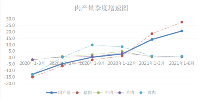 全省猪牛羊禽肉产量219.29万吨,同比增20.8%,较一季度提高6.6个百分点,其中,猪肉产量172.16万吨,同比增27.6%;牛肉产量17.36万吨,同比增0.5%;羊肉产量9.04万吨,同比增0.9%;禽肉产量20.72万吨,同比增1.2%。